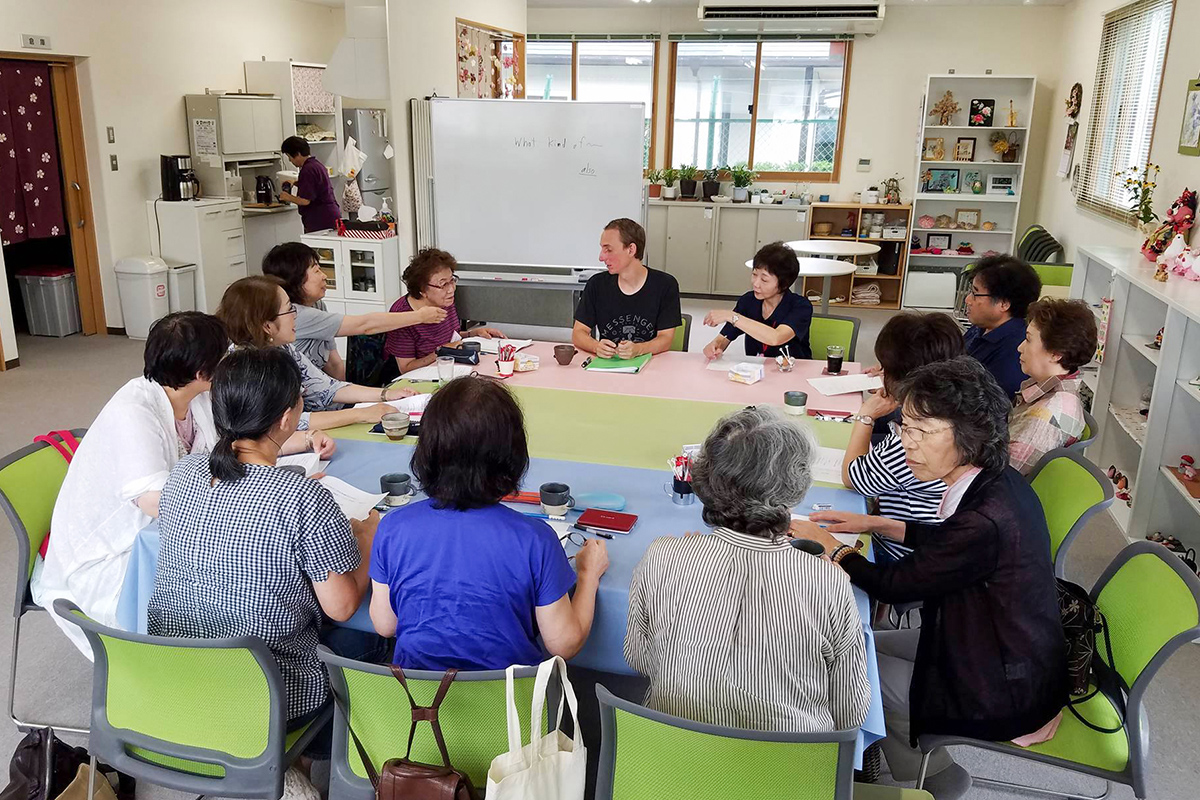 セカンドライフをより充実して過ごせるようにと、外国人の方に講師として協力していただき「大人のためのカンタン英会話」を開催しています。まったりとした雰囲気にかこまれて、愉しく気楽なトークの時を過ごしていただきながら、簡単な英会話から学んでいきます。
