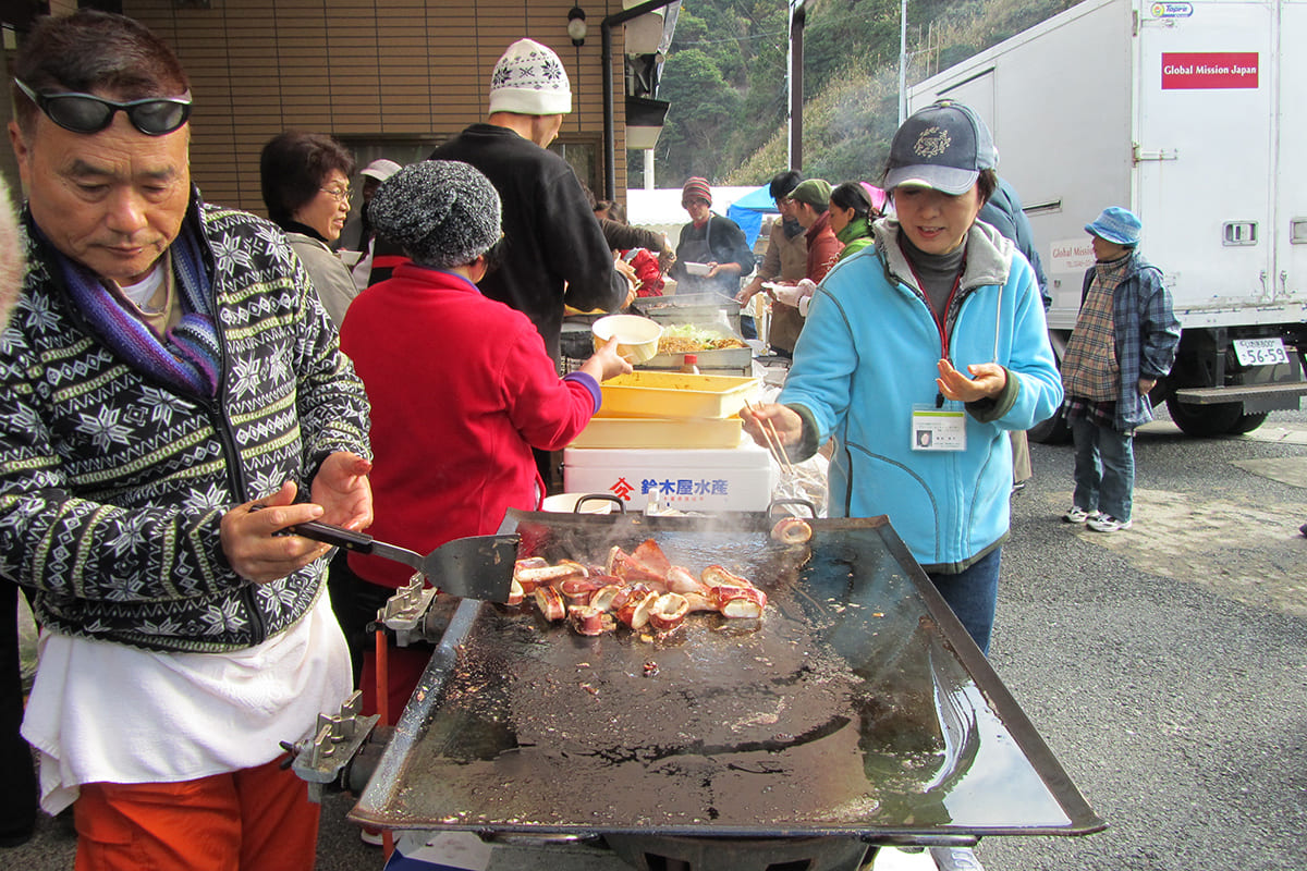 大震災直後は、被災して苦しむ方々の必要のため、わずかでも出来ることをさせてもらいました。震災一週間後からはボランティアが続々と私たちのセンターに来て下さり、それと前後して国内外から支援物資が毎日届けられました。レンタカーで物資を運んで来られた皆さん、一週間、二週間と仕事を休んで駆けつけて下さった皆さん、泥まみれになって一日中ガレキ撤去の作業をしながら終始スマイルを絶やさなかった皆さん。そんな皆さんが困窮の中にある方々のために進んで働く姿に、私たちは感動の毎日でした。その多くは、何の伝手もないまま海外から自費で来られた方々でした。何かをせずにはいられないという一途な思いで福島に来て下さった海外からのボランティアは、世界の40ヶ国、延1万5千人に及びます。