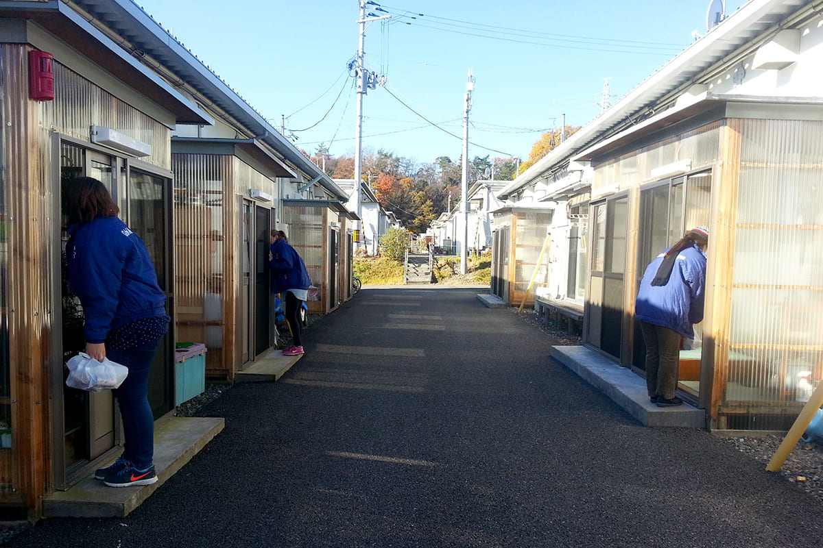 帰還が進められるなか、縮小化する仮設住宅には取り残されている方がいらっしゃいます。引きこもりがちな孤独な方のためにも、安否を確かめ、お話しをお聴きし、孤立化の防止に努めてまいります。たった一人の方のためにも全力を尽くします。復興住宅に新しくお住いのみなさんが、いち早くコミュニティー形成ができますようにお手伝いをします。フードバンクプログラムで経済的に困窮されている方々をサポートします。