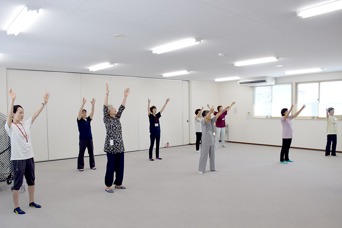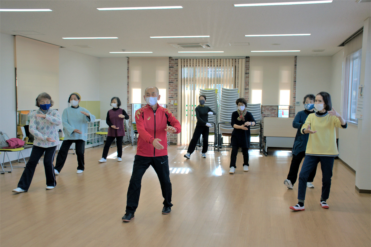 中高年者の健康回復に養生太極拳(狭隘な仮設環境からの脱出)。未来を担う子供たちに武術太極拳(心身の鍛錬と思いやりを育む)を開催しています。避難生活が続いている福島県の浪江町、双葉町、大熊町、富岡町、楢葉町の方々を対象にいわき市内の仮設施設などで世代間交流と新たなコミュニティーの構築を目的とし巡回開催しています。またふるさとの町や村に帰還された方々のためにも、それぞれの地域での開催も実施しています。年間二百回超を実施します。